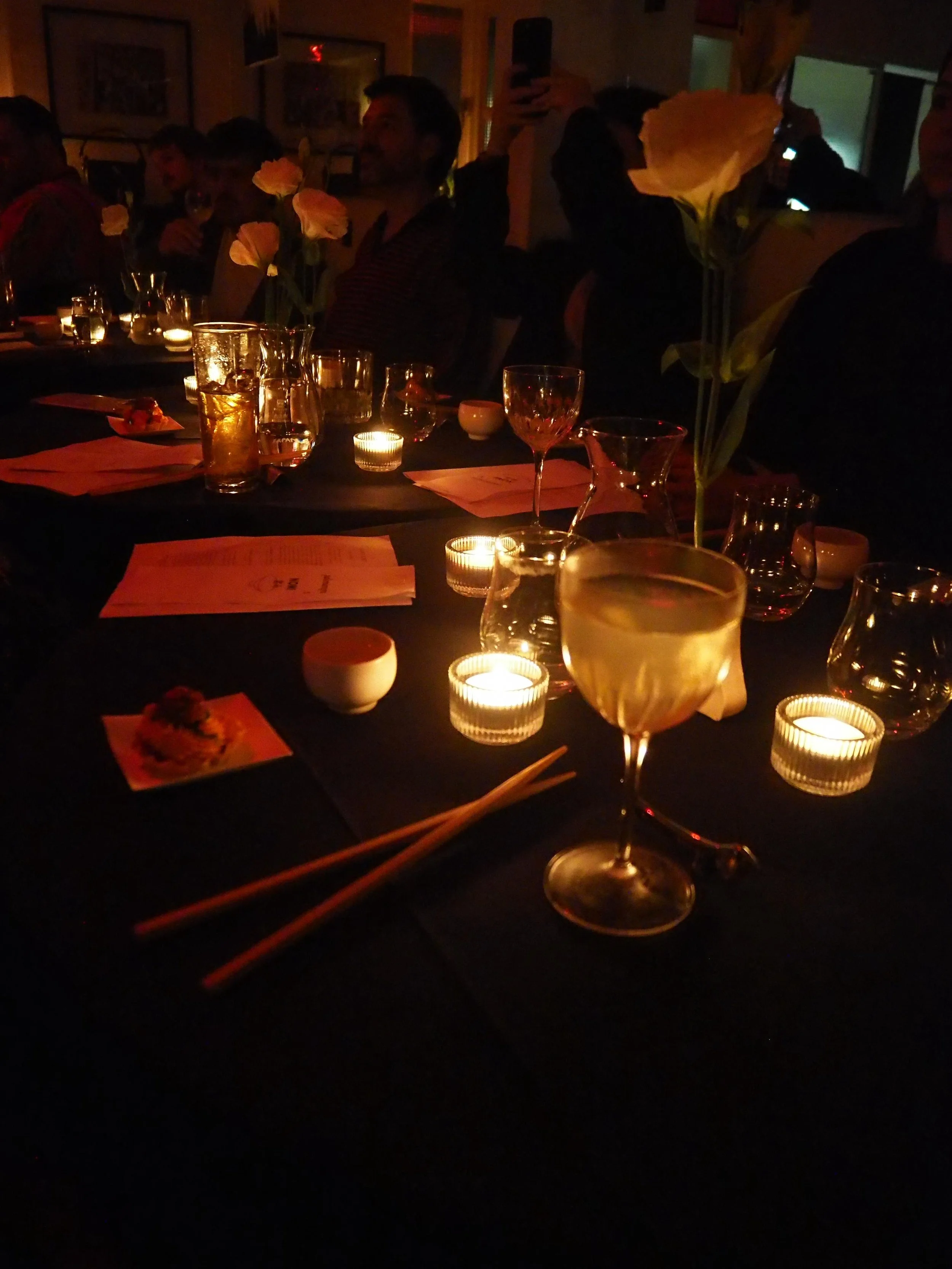Neon-touched noir, with one long, black-cloaked candlelit table. Come join us for small plates of izakaya-style bar food, the clink of ochoko filled with boutique sake, and rare vintage Japanese records all night.